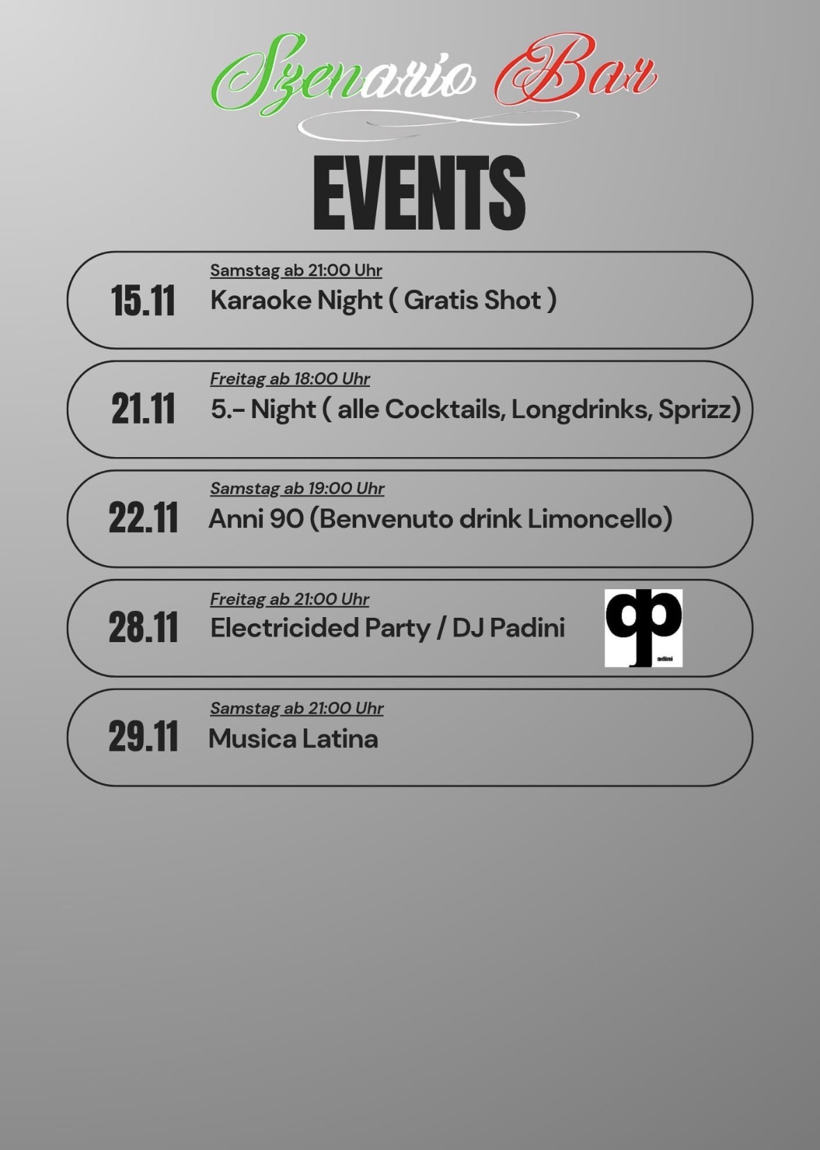 Sie möchten einen unvergesslichen Abend in einer einzigartigen Bar erleben? Dann sind Sie bei uns genau richtig! Die Szenario Bar ist bekannt für ihre erstklassigen Drinks, die beste Stimmung und das freundliche Team unter der Führung